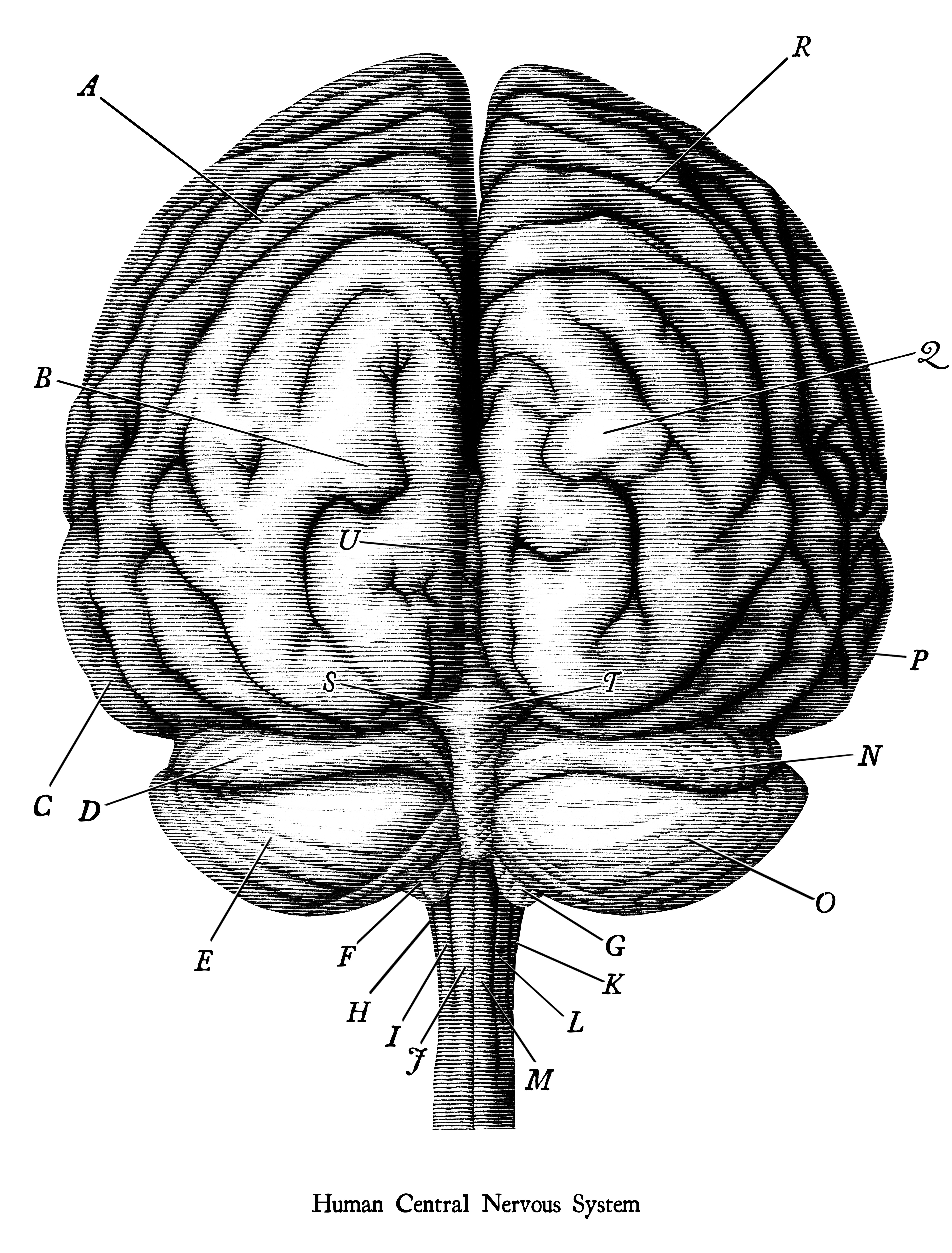 Antique illustration of human brain engraving style isolated on white background