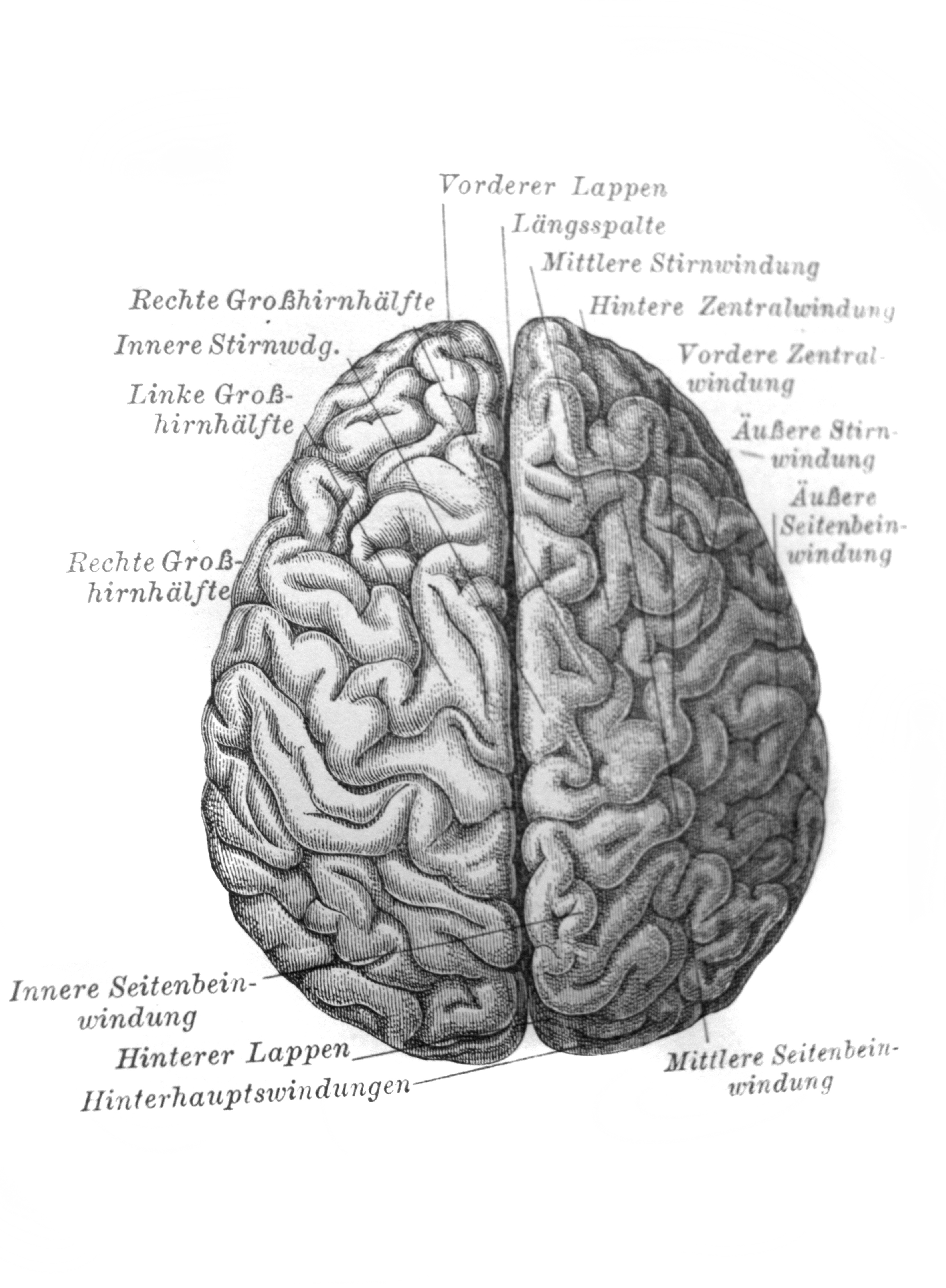 Previous Image Next Image Brain, top view in the old book Meyers Lexicon, vol. 7, 1897, Le Brain, top view in the old book Meyers Lexicon, vol. 7, 1897, Leipzig
