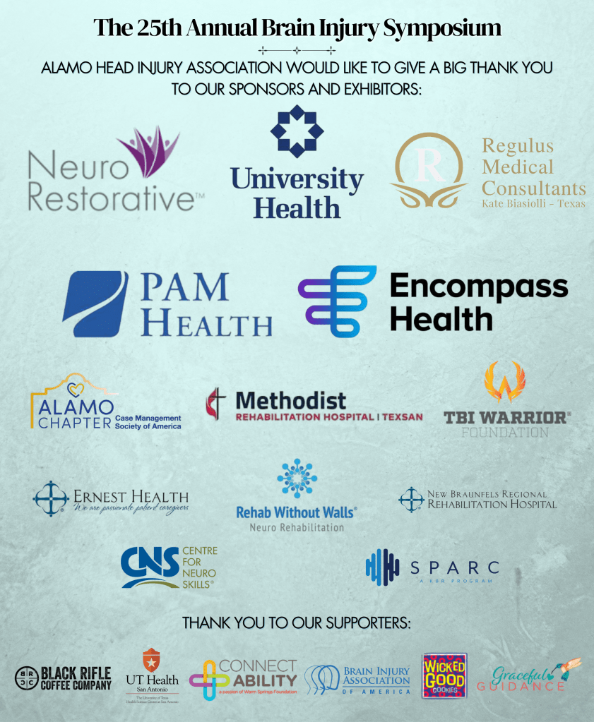 The 25th Annual Brain Injury Symposium hosted by Alamo Head Injury Association will be held April 15th, 2026 at the Pestana Lecture Hall located at UTHSC San Antonio, TX.